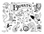 11" x 14" print of a tattoo flash sheet of my medieval beasts drawings.